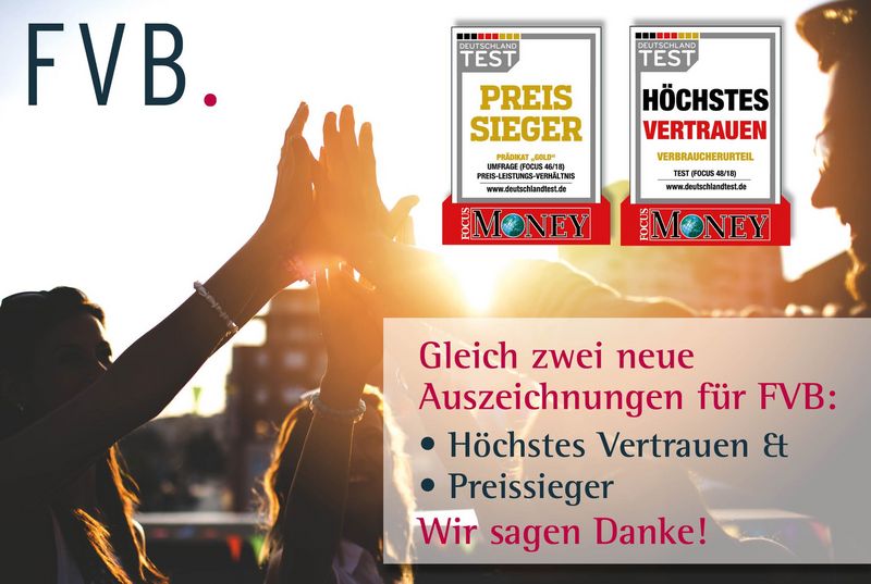 Die FVB hat gleich zwei neue Auszeichnungen auf der Grundlage von Kundenumfragen im Deutschlandtest bekommen: "Preissieger" & "höchstes Vertrauen".